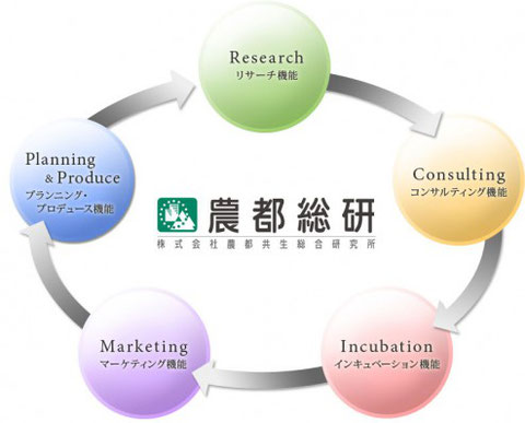 Research リサーチ機能 農都共生の地域づくりに必要な情報・知識・ノウハウを組織的に集積し、問題解決のための多角的な調査研究を行い、その成果を各地域の地方自治他、NPO、企業等に提供する。